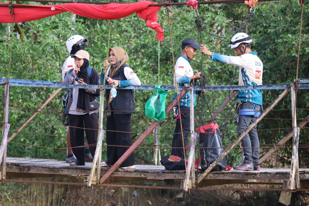 Agus Riyanto mengatakan bahwa pemasangan di jembatan gantung ini cukup menantang. Tim harus menggunakan teknik vertical rescue, menggantung dengan tali sambil membawa perlengkapan, dan menjaga keseimbangan di atas jembatan yang terus bergoyang saat diinjak.