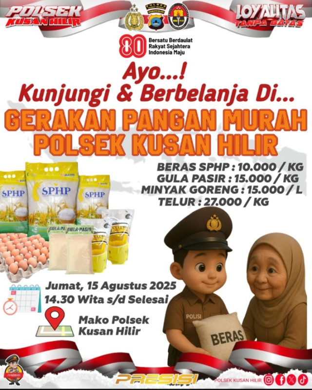 “Gerakan Pangan Murah di Kusan Hilir ini merupakan giliran keempat pelaksanaan kegiatan di jajaran Polsek, setelah Satui, Sungai Loban, dan Angsana,” jelasnya.