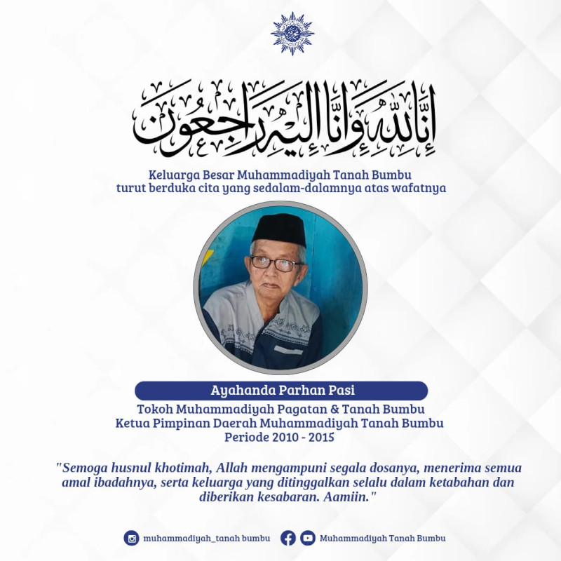 BATULICIN – Kabar duka menyelimuti Tanah Bumbu. Tokoh Muhammadiyah Pagatan sekaligus salah satu pendiri Kabupaten Tanah Bumbu, Ayahanda Parhan Pasi, wafat pada Rabu, 17 September 2025. Almarhum disemayamkan di rumah duka, Jalan A. Yani, Kelurahan Pagatan, Kecamatan Kusan Hilir.